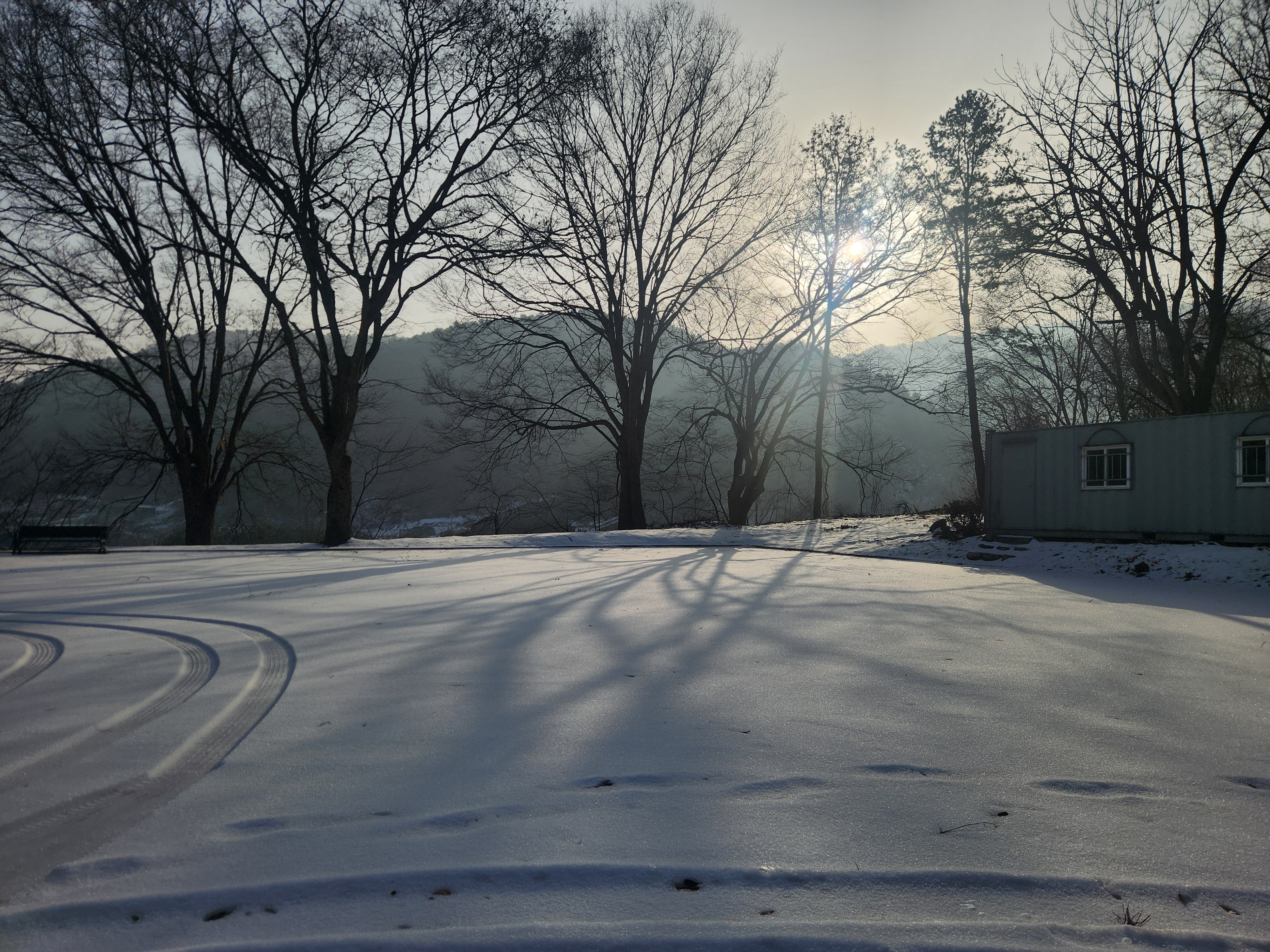 오후였지만 종일 방문객이 없었던건지 주차장은 쌓인 눈 위로 나무그림자가 선명하게 드리우고 있었다.